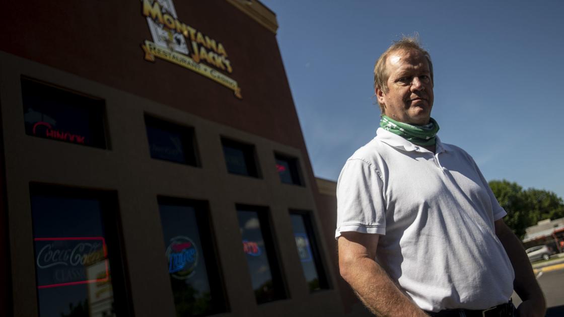 Bob Morin, owner of Montana Jacks, stands in front of the restaurant and casino on South Avenue on Monday. Morin posted a sign over the weekend stating, "If you have a medical condition, that prevents you from wearing a mask, you are exempt from this order," though the sign has since been removed. He estimates the business saw a 25% dip in revenue compared to the previous week, following the Missoula City-County Board of Health's mandate that all people wear masks in public spaces indoors.