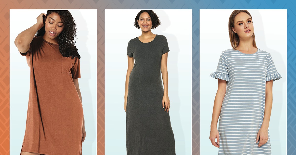 If you’re looking for a classic T-shirt dress, this one is a well-reviewed pick with more than 1,500 five-star ratings . The A-line number is made from rayon and elastane for a soft and stylish drape, and it has a casual scoop neckline for maximum comfort that you can wear day to night.