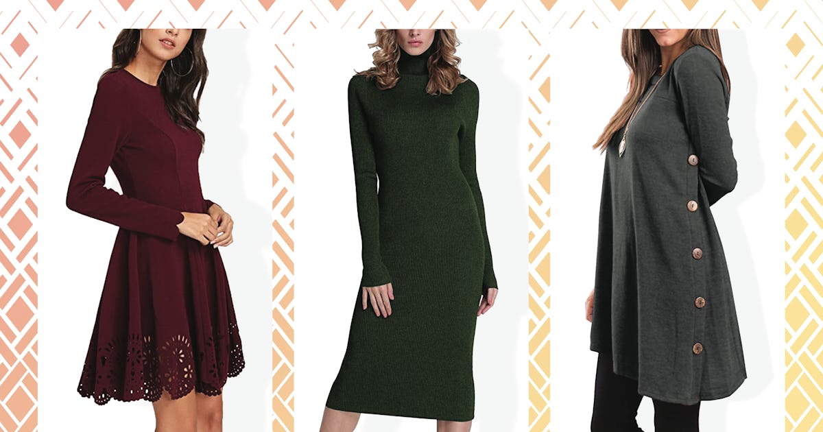 I’ve included something for everyone, from a long off-the-shoulder dress to a short body-con number. These picks are available in a variety of colors, sizes, and prices to bring coziness to your winter wardrobe.