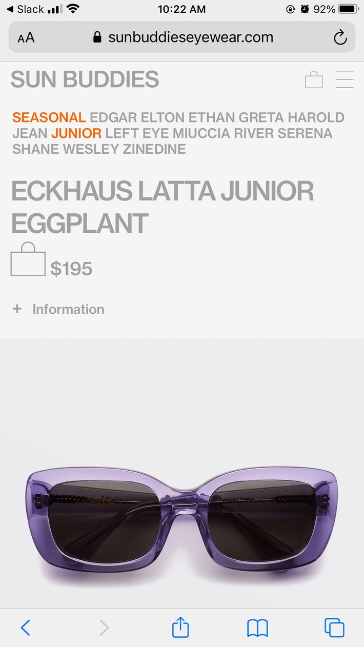 So now, of course, I need to buy more purple. I think I’m going to start small, maybe with a pair of purple sunglasses (see below).